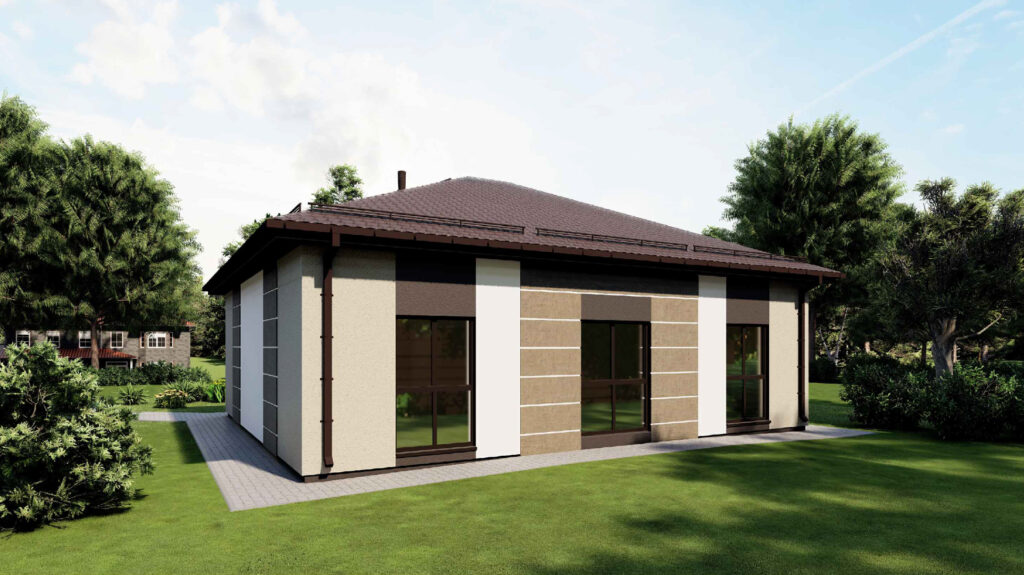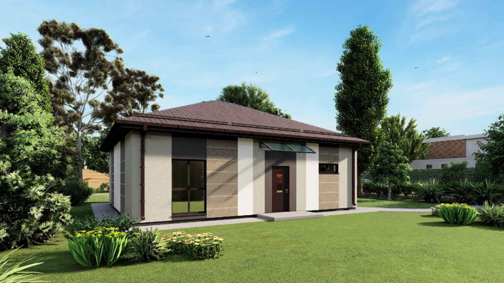 - Одноэтажный индивидуальный одноквартирный крупнопанельный жилой дом типа «Шале», разработан с использованием индустриальных изделий на базе типового проекта 152М-1.10.